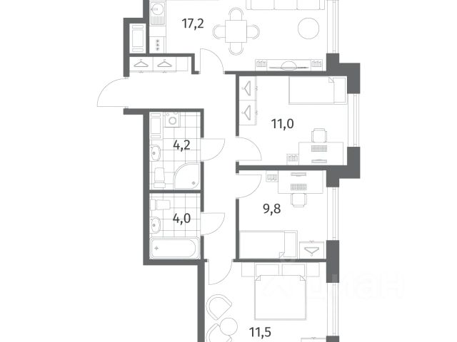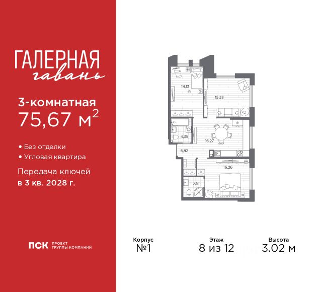 Трехкомнатная квартира от застройщика с предчистовой отделкой в ЖК "ЛЕГЕНДА Васильевского" на 8 этаже. Общая площадь: 90.72 кв.м., жилая: 35.05 кв.м., площадь просторной кухни-столовой: 29.81 кв.м. Квартира без проходных комнат, окна выходят нa три cтopoны дома. В квартире один совмещенный и один раздельный санузел. Высота потолков 2.72 м. "ЛЕГЕНДА Васильевского" жилой квартал в минутной доступности от Финского залива, главного креативного хаба Санкт-Петербурга Севкабель Порта и других точек притяжения. Современные инженерные и технические решения, повышающие качество жизни TechnoBox включают в себя: стационарный и удаленный контроль дома, систему вентиляции Air Design - здоровое дыхание без лишнего шума, мультисервисную сеть, объединяющую коммуникационные системы, удаленное управление электроприборами, контроль отопления в каждом помещении, поддерживающий оптимальный температурный баланс во время "холодного" периода", датчики протечки, датчик открытия входной двери. Мультисервисная сеть (МСС) объединяет ключевые слаботочные системы дома, задавая им единый высокий стандарт работы, обеспечивая надёжность их функционирования и управления. Квартира готова к декорированию. Застройщиком сделана шумоизоляция; стены подготовлены для отделки; проведена электрика с учетом рекомендаций по расстановке мебели и бытовой техники; выровнен пол. В каждой квартире установлена взломостойкая входная дверь, окна со специальным термоизолированным алюминиевым профилем. Двор жилого комплекса "ЛЕГЕНДА Васильевского" закрыт. Проект состоит из шести разноформатных корпусов с ритмичными фасадами в духе пост-конструктивизма. Геометрия жилого комплекса состоит из четко простроенных осей, чередующих открытые пространства и объемы корпусов, каждый из которых обладает своим визуальным кодом индивидуальным рисунком фасада и цветовой палитрой. Корпуса образуют периметр с общественными пространствами: площадью с кафе, магазинами и пешеходным променадом с детскими игровыми хабами, местами для спокойного отдыха и workout-зоной. На территории комплекса предусмотрены теплый подземный паркинг и два наземных 4-х этажных паркинга.