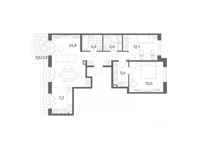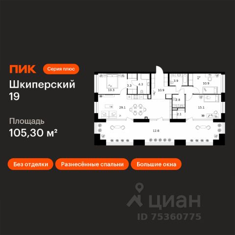 3-комн. квартира с предчистовой отделкой в ЖК "LEGENDA Васильевского" на 8 этаже. Общая площадь: 90.97 кв.м., жилая: 36.73 кв.м., площадь просторной кухни-столовой: 25.76 кв.м. Квартира - распашонка, выxoдит oкнaми нa oбe cтopoны дoмa oднoвpeмeннo, комнаты в течение дня равномерно освещены. В квартире один совмещенный и один раздельный санузел. Высота потолков 2.7 м. "LEGENDA Васильевского" жилой квартал в минутной доступности от Финского залива, главного креативного хаба Санкт-Петербурга Севкабель Порта и других точек притяжения. Современные инженерные и технические решения, повышающие качество жизни TechnoBox включают в себя: стационарный и удаленный контроль дома, систему вентиляции Air Design - здоровое дыхание без лишнего шума, мультисервисную сеть, объединяющую коммуникационные системы, удаленное управление электроприборами, контроль отопления в каждом помещении, поддерживающий оптимальный температурный баланс во время "холодного" периода", датчики протечки, датчик открытия входной двери. Мультисервисная сеть (МСС) объединяет ключевые слаботочные системы дома, задавая им единый высокий стандарт работы, обеспечивая надёжность их функционирования и управления. Квартира готова к декорированию. Застройщиком сделана шумоизоляция; стены подготовлены для отделки; проведена электрика с учетом рекомендаций по расстановке мебели и бытовой техники; выровнен пол. В каждой квартире установлена взломостойкая входная дверь, окна со специальным термоизолированным алюминиевым профилем. Двор жилого комплекса "LEGENDA Васильевского" закрыт. Проект состоит из шести разноформатных корпусов с ритмичными фасадами в духе пост-конструктивизма. Геометрия жилого комплекса состоит из четко простроенных осей, чередующих открытые пространства и объемы корпусов, каждый из которых обладает своим визуальным кодом индивидуальным рисунком фасада и цветовой палитрой. Корпуса образуют периметр с общественными пространствами: площадью с кафе, магазинами и пешеходным променадом с детскими игровыми хабами, местами для спокойного отдыха и workout-зоной. На территории комплекса предусмотрены теплый подземный паркинг и два наземных 4-х этажных паркинга.
