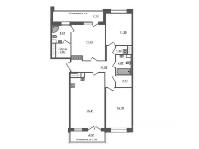 Квартира расположена на 3 этаже, общая площадь 85.17 м2, а высота потолков 2.76 м. В ней очень продуманная и грамотная планировка: помещения кухни и двух комнат выходят окнами в сторону набережной Малой Невы, а третья комната в тихий двор. Также есть два санузла, две лоджии и хозяйственная комната.