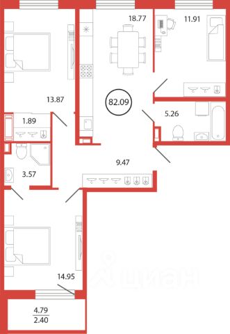 Продаётся e4 комнатная квартира (евро) в жилищном комплексе "Энфилд" (корпус Дом 18 секция 2). Общая площадь 85,62 кв. м, площадь комнат 14,94 кв.м, 14,81 кв.м, 14,07 кв.м. 2 санузла. Квартира расположена на 9 этаже 12 этажного дома. Срок сдачи корпуса IV квартал 2027 года. Современный жилой квартал "Энфилд" от компании Arsenal объединяет в себе преимущества хорошей экологии и удобного расположения рядом с городом. Квартал расположен на территории Мурино-Бугры, в 10 минутах от метро Девяткино. В состав ЖК "Энфилд" войдет 17 домов высотой до 12 этажей, 14 из них уже построено и сдано. На территории работает два детских сада и школа с углубленным изучением иностранных языков. Квартал славится красивой территорией, пешеходным бульваром с фонтанами, детскими и спортивными площадками, инфраструктурой для отдыха. В 5 минутах ходьбы расположен гипермаркет "Лента", из квартала предусмотрен удобный выезд на КАД.