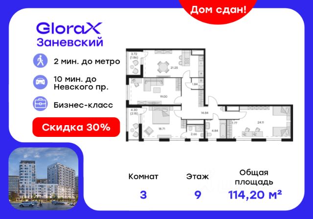 Цена со скидкой до 30% в прямой продаже от застройщика — только в этом месяце. При покупке апартаментов - паркинг за полцены. На все апартаменты действует беспроцентная рассрочка. Купите на распродаже! Покупка недвижимости в Zoom на Неве сейчас со скидкой до 30% позволит через 2 года получить доход до 6 300 000 руб. Роскошные виды на Неву. 3-к апартамент в комплексе класса бизнес-лайт Zoom на Неве на 9-м этаже. Общая площадь 72,74. Без отделки. Zoom на Неве расположен в новом месте силы рядом с центром города на первой линии Октябрьской набережной в Невском районе, всего в 7 км от исторической части Санкт-Петербурга. Большой выбор эргономичных и максимально продуманных планировок позволит каждому найти вариант по душе. Панорамные виды на Неву, благоустроенные дворы, детская игровая комната, подземный паркинг, коммерческие зоны на первом этаже, это и многое другое делает Zoom на Неве идеальным местом для жизни. Особенности: - Панорамные виды на Неву и город; - 10 мин. до Парка Строителей, 15 мин. до Лондон-молла, Ленты, Максидома, 15 мин. до метро "ул. Дыбенко", 12 мин. до КАД, 10 мин. до центра; - Единая архитектурная концепция. Сдержанные и монументальные фасады в неоклассическом стиле; - Парадный лобби для жильцов. Единый вход в комплекс с администратором, зоной ресепшн и охраной, зоной для бесконтактной доставки посылок и еды; - Подземный отапливаемый паркинг с доступом из парадной; - Доступно 3 варианта отделки на выбор: черновая, предчистовая (White Box) и чистовая; - Зоны отдыха для взрослых и детей, Wi-Fi-покрытие во дворе и в паркинге, зоны для питомцев, арт-объекты и много другое. В шаговой доступности вся необходимая инфраструктура от детских садов и школ до супермаркетов и салонов красоты; - Все происходящее контролируется видеокамерами, а покой внутренней территории и безопасность ваших детей гарантируется полным отсутствием транспорта во дворах в концепции "без машин".