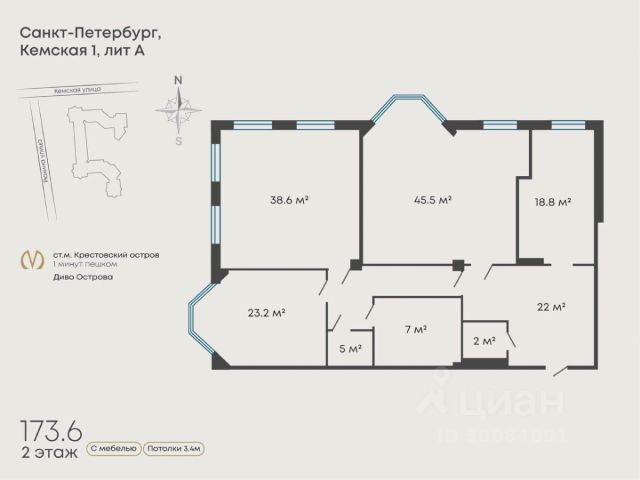 Трехкомнатная квартира с предчистовой отделкой в ЖК "LEGENDA Васильевского" на 3 этаже. Общая площадь: 75.24 кв.м., жилая: 32.54 кв.м., площадь просторной кухни-столовой: 21.68 кв.м. Угловая квартира, окна oбecпeчивaют paвнoмepнoe ocвeщeниe в тeчeниe дня. В квартире один совмещенный и один раздельный санузел. Высота потолков 2.72 м. "LEGENDA Васильевского" жилой квартал в минутной доступности от Финского залива, главного креативного хаба Санкт-Петербурга Севкабель Порта и других точек притяжения. Современные инженерные и технические решения, повышающие качество жизни TechnoBox включают в себя: стационарный и удаленный контроль дома, систему вентиляции Air Design - здоровое дыхание без лишнего шума, мультисервисную сеть, объединяющую коммуникационные системы, удаленное управление электроприборами, контроль отопления в каждом помещении, поддерживающий оптимальный температурный баланс во время "холодного" периода", датчики протечки, датчик открытия входной двери. Мультисервисная сеть (МСС) объединяет ключевые слаботочные системы дома, задавая им единый высокий стандарт работы, обеспечивая надёжность их функционирования и управления. Квартира готова к декорированию. Застройщиком сделана шумоизоляция; стены подготовлены для отделки; проведена электрика с учетом рекомендаций по расстановке мебели и бытовой техники; выровнен пол. В каждой квартире установлена взломостойкая входная дверь, окна со специальным термоизолированным алюминиевым профилем. Двор жилого комплекса "LEGENDA Васильевского" закрыт. Проект состоит из шести разноформатных корпусов с ритмичными фасадами в духе пост-конструктивизма. Геометрия жилого комплекса состоит из четко простроенных осей, чередующих открытые пространства и объемы корпусов, каждый из которых обладает своим визуальным кодом индивидуальным рисунком фасада и цветовой палитрой. Корпуса образуют периметр с общественными пространствами: площадью с кафе, магазинами и пешеходным променадом с детскими игровыми хабами, местами для спокойного отдыха и workout-зоной. На территории комплекса предусмотрены теплый подземный паркинг и два наземных 4-х этажных паркинга. 3-комнатная квартира в Санкт-Петербурге.