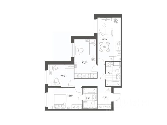 Продается квартира площадью 79.28 м² на 9 этаже 1 секции в Речной квартал от компании ГК "ТРЕСТ". Площадь кухни 18.24 м². Семейный жилой комплекс комфорт-класса "Речной квартал" от Группы компаний "ТРЕСТ" расположен в Невском районе Петербурга на пересечении Октябрьской набережной и Русановской улицы. Первая очередь квартала состоит из трёх корпусов, расположенных лучеобразно, чтобы максимально использовать естественное освещение и обеспечить видовые точки на локацию. Проект выделяется современными архитектурными решениями и дизайном. Концепция развития и благоустройства придомовой территории разделена на зоны отдыха, досуга и игровые площадки с учетом возраста и потребностей детей и взрослых. Квартал рассчитан на семейных покупателей, поэтому здесь нет студий: только одно-, двух- и трёхкомнатные квартиры. В проекте представлены квартиры с кухнями-гостиными, мастер-спальнями, гардеробными и кладовыми. "Речной квартал" - современный жилой комплекс с разнообразным благоустройством придомовой территории, просторными европланировками, закрытой охраняемой территорией и подземными паркингами. На территории комплекса уже функционирует детский сад на 110 мест. Также в квартале будет построена общеобразовательная школа на 475 мест с бассейном и стадионом. Открытие школы запланировано на 2029 год. Квартиры в ЖК "Речной квартал" можно приобрести с готовой отделкой от застройщика. Для покупателей квартир предусмотрено два варианта чистовой отделки "Ваниль" и "Шоколад". Чистовая отделка в квартирах ЖК "Речной квартал" предполагает монтаж натяжных потолков, укладку ламината, оклейку стен обоями под покраску, установку светильников и межкомнатных дверей. При отделке новой квартиры применяются качественные, натуральные и экологичные материалы, монтируется стильная импортная сантехника европейских брендов. В объявлении указана стоимость квартиры при 100% оплате. При других формах оплаты - базовую стоимость квартиры уточняейте на официальном сайте компании или у менеджера отдела продаж. Застройщик АО "Специализированный застройщик "Строительный трест".