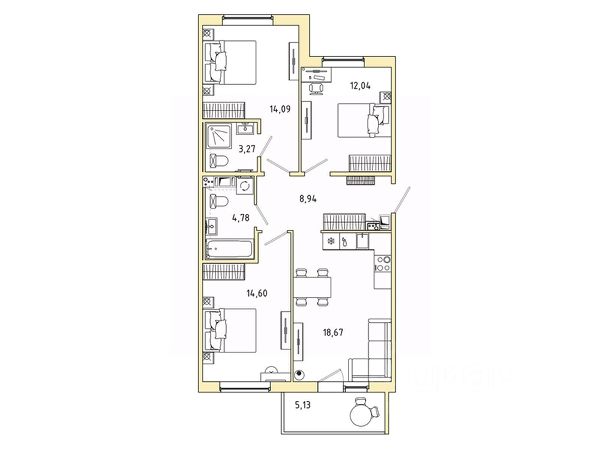 Продается трехкомнатная квартира 214 в ЖК IQ Гатчина