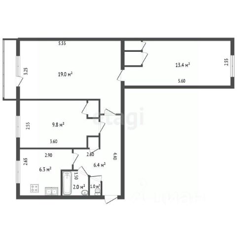 высота потолков — 3,4 м;