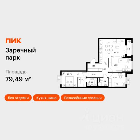 Продаётся 3-комн. квартира площадью 70 кв.м на 23 этаже 24 этажного дома (Корпус 6, Секция 2) проекта ПИК Заречный парк. Светлый просторный подъезд на уровне земли, функциональная планировка, большие окна, c отделкой. Жилой квартал "Заречный парк" расположен в районе Новое Девяткино Ленинградской области. В 7 минутах на автомобиле - станция метро "Девяткино", до КАД - 10 минут на машине. В 2026 году будет достроена шестиполосная трасса в обход Мурино, примыкающая к Пискарёвскому проспекту. Она станет дополнительным выездом на КАД для жителей "Заречного парка". Проект включает восемь домов высотой от 15 до 24 этажей, три многоуровневых паркинга, детский сад и школу. В зелёных дворах-парках будут оборудованы современные детские и спортивные площадки, обустроены места для отдыха. На первых этажах разместятся магазины, кафе и другие сервисы. Планировки продуманы так, чтобы каждый квадратный метр жилой площади можно было эффективно использовать. Все квартиры сдаются с готовой отделкой. Артикул 973303 (Застройщик ООО "СПЕЦИАЛИЗИРОВАННЫЙ ЗАСТРОЙЩИК ИНВЕСТАЛЬЯНС") [cn_sbp_1844511]