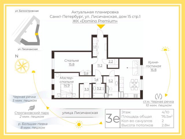 Уютная светлая 3-комнатная квартира в 10 минутах ходьбы от ЦПКиО. До метро 5 минут пешком. Рядом Ашан и множество магазинов, включая ТЦ "Гулливер". О квартире: ремонт делали для себя. Электрика вся заменена от счетчика, много удобных и современных розеток, в том числе на кухне. Установлен входной фильтр и фильтр тонкой очистки, трубы в парадной поменяли в 2022-м. Окна выходят как во двор (кухня, гостиная, детская), так и на улицу. За счет двусторонних окон в квартире летом не жарко. Оборудованные гардеробная и кладовка. Продуманная планировка кухни и гостиной позволяют одновременно готовить и общаться с гостями. Если вы с ребенком, то в подарок спортивный комплекс и защита на окна и розетках в детской. Рядом детский сад и несколько школ, включая английскую гимназию, ДДЮТ с разнообразными кружками. Удобный выезд на ЗСД (3 мин), на Приморское ш. В 10 минутах езды расположен Лахта-центр и парк 300-летия. Когда там все заполнится, квартира, вероятно, подорожает. В подъезде очень приветливые и приличные соседи, хорошая шумоизоляция. Дом угловой, что делает уютным и спокойным двор с детской площадкой. Квартира содержится в чистоте, можно заехать после покупки и жить. Мы не сотрудничаем с агентами на данном этапе. Просим агентов нам не предлагать свои услуги. 3-комнатная квартира в ипотеку рядом с метро Черная речка.