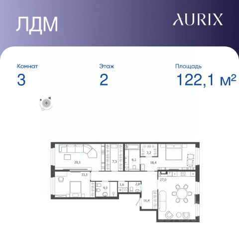 Продается 3-к квартира без отделки в ЖК "ЛДМ". Общая площадь квартиры — 122.1 кв. м, этаж 2 из 8. Тип дома — монолитный. Цена указана при 100% оплате. Описание из материнского фида