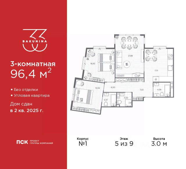 Прямая продажа от застройщика — только в этом месяце. 3-к квартира в клубном доме N8 на 10-м этаже. Общая площадь 88,64. Без отделки. Клубный дом N8 — новый статусный проект высокого бизнес-класса от одного крупнейших федеральных девелоперов ГК ФСК. Это камерное пространство в историческом центре Петербурга на тихой Новгородской улице, скрытое в 5 минутах пешком от Невского проспекта и Ратуши. В облике дома отражены характерные черты петербургской исторической архитектуры: фактурная кирпичная кладка песочных оттенков, декоративные вставки и разностилевое остекление. В клубном доме N8 небольшое количество квартир — всего 281, от трех на этаже. Это позволило создать атмосферу приватности и камерности, а еще — воплотить замысел архитекторов, стремившихся наполнить дом квартирами с панорамными видами на город. От премиальных и экологичных материалов до новейших технологий, от современных инженерных систем до планировок "ручной работы", от впечатляющего парадного холла до уютного внутреннего двора: высокие стандарты девелопера гарантируют, что вы будете приятно удивлены уровнем комфорта и визуальной эстетики. В доме запланированы закрытая территория со смарт-доступом, подземный паркинг с доступом на лифте, зоны отдыха для жильцов. Квартир сдаются без отделки, что позволит собственникам квартир реализовать любые дизайнерские идеи. Продается 3-комнатная квартира в ипотеку рядом с метро Площадь Восстания.