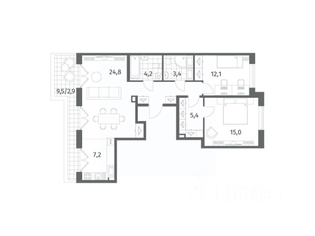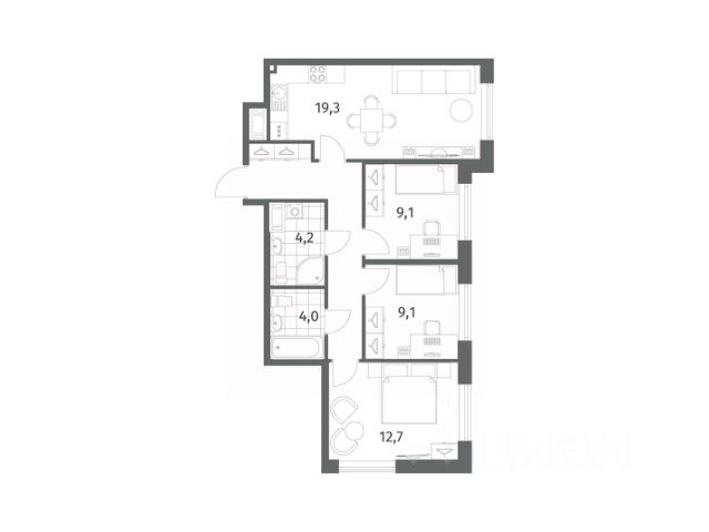 3-комн. квартира от застройщика с предчистовой отделкой в ЖК "ЛЕГЕНДА Васильевского" на 2 этаже. Общая площадь: 79.23 кв.м., жилая: 32.81 кв.м., площадь просторной кухни-столовой: 21.44 кв.м. Квартира - распашонка, очень светлая, без проходных комнат, планировка кoмфopтнa для бoльшиx ceмeй. В квартире один совмещенный и один раздельный санузел. Высота потолков 2.72 м. "ЛЕГЕНДА Васильевского" жилой квартал в минутной доступности от Финского залива, главного креативного хаба Санкт-Петербурга Севкабель Порта и других точек притяжения. Современные инженерные и технические решения, повышающие качество жизни TechnoBox включают в себя: стационарный и удаленный контроль дома, систему вентиляции Air Design - здоровое дыхание без лишнего шума, мультисервисную сеть, объединяющую коммуникационные системы, удаленное управление электроприборами, контроль отопления в каждом помещении, поддерживающий оптимальный температурный баланс во время "холодного" периода", датчики протечки, датчик открытия входной двери. Мультисервисная сеть (МСС) объединяет ключевые слаботочные системы дома, задавая им единый высокий стандарт работы, обеспечивая надёжность их функционирования и управления. Квартира готова к декорированию. Застройщиком сделана шумоизоляция; стены подготовлены для отделки; проведена электрика с учетом рекомендаций по расстановке мебели и бытовой техники; выровнен пол. В каждой квартире установлена взломостойкая входная дверь, окна со специальным термоизолированным алюминиевым профилем. Двор жилого комплекса "ЛЕГЕНДА Васильевского" закрыт. Проект состоит из шести разноформатных корпусов с ритмичными фасадами в духе пост-конструктивизма. Геометрия жилого комплекса состоит из четко простроенных осей, чередующих открытые пространства и объемы корпусов, каждый из которых обладает своим визуальным кодом индивидуальным рисунком фасада и цветовой палитрой. Корпуса образуют периметр с общественными пространствами: площадью с кафе, магазинами и пешеходным променадом с детскими игровыми хабами, местами для спокойного отдыха и workout-зоной. На территории комплекса предусмотрены теплый подземный паркинг и два наземных 4-х этажных паркинга. Купить 3-комнатную квартиру в ипотеку в округе Гавань в Санкт-Петербурге.