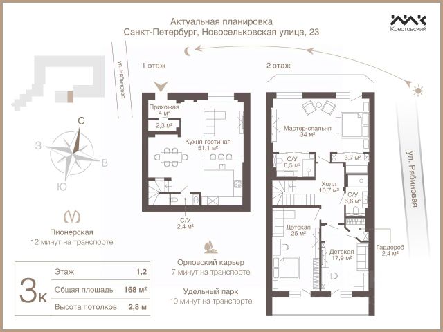 Продается уютная, семейная 3-комнатная квартира от застройщика в жилом комплексе "Бионика Заповедная" в динамичном Приморском районе. До метро можно добраться на транспорте всего за 11 минут. Мастер-спальня с собственной ванной комнатой. Самое приватное пространство в вашей квартире. Уникальная, функциональная европланировка, большая кухня-гостиная 18 м², просторная прихожая 13.55 м². Общая площадь квартиры - 84.5 м², жилая 42.7 м², высота потолка 2.77 м. Квартира продается с отделкой "NORD LINE SILVER ВК NEW". Что особенного в ЖК "Бионика Заповедная"? • Оазис в городе 3 минуты пешком до Новоорловского заказника (140 ГА) • Захватывающие виды из окон на хвойный лесопарк • Всесезонный "Заповедный парк" во дворе площадью 23000 кв.м. • 5 единых входных групп с авторским дизайном и лаундж-зонами, сити-виллы на первых этажах с палисадниками и высотой потолков до 4 м • Места притяжения: фонтан "Бионика", спортивный кластер со скейт-парком, фотозоны с арт-объектами Купить 3-комнатную квартиру в ипотеку в округе Коломяги в Санкт-Петербурге.