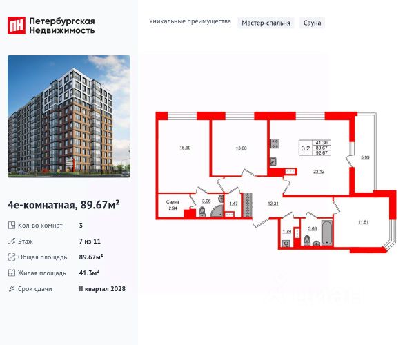 Клубный дом "Литера" от RBI. Новая "Литера" вашей жизни Камерный проект бизнес-класса на 195 квартир строится в 6 минутах от метро "Елизаровская" в непосредственной близости от исторического и делового центра Петербурга. Дом располагается в 700 м от набережной Невы по Большому Смоленскому проспекту: встречать рассветы и провожать закаты, наслаждаясь захватывающей панорамой города и зелёным окружением Невского района, можно из окон собственной квартиры! До Московского вокзала и центральной части Невского проспекта — 15 минут с учётом пешей прогулки до "Елизаровской" от дома. Добраться на автомобиле можно за то же время. До аэропорта "Пулково" 23 км. Дом состоит из двух 12-этажных секций, которые располагаются друг напротив друга, и ещё двух 8-этажных. Вместе секции образуют букву "Л" — форма дома отсылает к его названию. Планировки — от студий до просторных евро-четырёхкомнатных. Площадь квартир — от 24 до 121 м², высота потолков на типовых этажах — 2,8 м. На верхних этажах располагаются квартиры с террасами. Для романтиков — квартиры с эркерами. Для ценителей функциональных планировок — квартиры с выделенной рабочей зоной кухни и большой гостиной-столовой, планировки с мастер-спальнями и гардеробными. Ритмичную архитектуру в стиле лофт дополняют характерные "литеры" эркеров. Основной объём внешних фасадов из красного кирпича обеспечивается за счёт фламандской 3D-кладки и декоративных рустов. Со двора фасады выполнены в светлых тонах — чтобы усилить ощущение простора и безопасности. Единая дизайн-концепция продолжается в лобби дома. Сочетание тёплого кирпича с холодным металлом и стеклом создаёт харизматичное, брутальное настроение интерьера парадной группы. Чёткость вертикальных объёмов смягчается округлыми формами стойки ресепшн и декоративных куртин, а большие витражные окна создают иллюзию бесконечности пространства. Придать мыслям стройную форму можно будет в специально оборудованной зоне коворкинга только для жителей. Здесь же в лобби со свободным Wi-Fi появится зона ожидания для гостей и уникальный арт-объект от Владимира Абиха. Диптих из объёмных оттисков друг друга при наложении образует единое целое и запечатывает в себе фразу "Между нами". Эта инсталляция — метафора общности между нами, воплощение в искусстве объективной истины о том, что хотя вокруг много людей, лишь с немногими ощущаешь неподдельную связь и самого себя кем-то цельным. Вход на приватную территорию — по электронному ключу бесконтактного доступа. Во дворе высадят взрослые деревья и цветущие растения, оборудуют зону для занятий спортом, места отдыха для взрослых и экологичную детскую площадку с развивающими элементами для малышей и подростков. Двор без машин — можно отпускать детей на прогулки и не переживать за их безопасность. Для жителей оборудуют тёплый подземный паркинг, велопарковки и колясочные. На охраняемой территории у дома появится гостевая стоянка. Дом "Литера". Для авторов своей жизни Продается 3-комнатная квартира в ипотеку в округе Невская застава в Санкт-Петербурге.