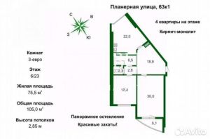 Преимущества квартиры:Просторная 3-евро квартира 105 м2!Свободная планировка, возможность спроектировать планировку по своему дизайну!Большая просторная кухня-гостиная 22 кв. м., мечта любой хозяйки!Просторные жилые комнаты 30 кв. м и 18 кв. м правильной прямоугольной формы, с возможностью организовать гардеробную, комната с гардеробной!Панорамное остекление в пол в Кухне-гостиной и большой комнате!Остекление полностью заменено на теплое!ВИДОВАЯ КВАРТИРА! Из окон открывается красивый вид на шикарные закаты, на Лахта центр, Юнтоловский заказник! Окна на улицу на парковую зону и во двор,Просторная прихожая 18 кв.м. Просторная прихожая это редкость в современных планировках, позволяет организовать пространство удобным для Вас способом с местом для хранения! гардеробной! или даже спальней или зоной отдыха,Просторные санузлы, возможность организовать 2 раздельных санузла!В квартире произведена разводка электрикиВ квартире предусмотрена возможность установки перегородок, дополнительного зонированияквартира продается без отделкиПреимущества дома:Кирпично-монолитный качественный дом 2010 года от хорошего застройщика!НА этаже ВСЕГО 4 КВАРТИРЫ! Это значит будет тихо и чисто!хорошие соседи!КРАСИВЫЙ ДОМ с архитектурной точки зрения!Хорошие лифты пассажирский и грузовой,видеонаблюдение в лифтах и по периметру дома,Удобная транспортная доступность до центра города и в любой район! до метро Комендантский проспект 10 мин на транспортерядом выезд на ЗСД, что позволяет быстро добраться в любую точку города, и быстро выехать за город,Во дворе подземный паркинг, и открытая парковкав пешей доступности: школы, детские сады, пекарни, магазины, автобусные остановки и большой ТЦ "Монпансье". Также в самом доме есть галерея с магазинами,Во дворе детская площадкаРядом парк, прогулочные тропы, река, здесь устраивают пикники, катаются на велосипедах, роликах, зимой на ватрушках и коньках!В районе также отличные парки, 15 минут на машине: парк 300-летия Санкт-Петербурга, ЦПКиО, парк Озеро Долгое, Юнтоловский заказник, Непосредственно Рядом с домом отличное место для отдыха и прогулок!ДОКУМЕНТЫ:В Собственности более 5 лет, покупали у ЗастройщикаБез обременений, Мат кап не использовался, без ипотекиникто не прописан1 взрослый собственникготовность к сделкевся сумма в договореБезопасная сделка в сопровождении