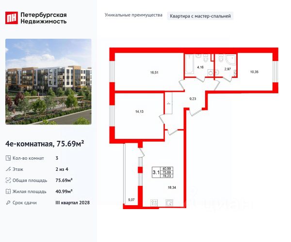 Цена действует при 100% оплате и на определенные ипотечные программы. Подробности — в отделе продаж по телефону. Продается 3-комнатная квартира в ЖК "Пулково Лейк" на 3 этаже. Общая площадь составляет 77.20 кв. м. Квартира с чистовой отделкой. Жилой комплекс "Пулково Лейк" располагается по адресу Санкт-Петербург, Московский. Пулково Лейк - проект малоэтажной застройки на берегу озера на границе Московского и Пушкинского районов. Школа, детские сады, парк на берегу озера и выезды на Пулковское и Петербургское шоссе. Расположение: • 5 мин на авто до Аэропорта Пулково; • 10 мин на авто до станций метро "Московская; • 10-15 мин на авто до городов Пушкина, Павловска и Гатчины; • 20 мин на авто до центра Санкт-Петербурга. В рамках проекта будет построена современная школа на 925 мест и 2 детских сада на 160 и 240 мест, выезды на Пулковское и Петербургское шоссе, а также храм рядом со сквером "Пулковский рубеж". Общественное пространство вдоль берега озера превратится во всесезонный парк, в котором найдется место для любых активностей от пробежек, катания на САПах и велосипедах до отдыха в шезлонгах и любования закатом солнца. Зимой будет работать каток, проложен лыжный маршрут, предусмотрено место для новогодней елки и горок для детей. Для Ваших питомцев - площадка для выгула собак. Преимущества ЖК: • Малоэтажный квартал с благоустроенным променадом. Комфортная городская жизнь в окружении озера и Пулковских высот. • Уникальные опции. Собственные патио на первом этаже, планировки с каминами и спа-зоной, двухуровневые и двухэтажные квартиры. • Удобное расположение в Московском районе. Аэропорт "Пулково", Экспофорум, царские пригороды Петербурга и выезд на КАД - от 7 до 20 минут на авто. • Образовательные возможности для ваших детей. Успейте приобрести квартиру на выгодных условиях! Чтобы узнать подробности, обращайтесь за консультацией по телефону. Продается 3-комнатная квартира в ипотеку в поселке Шушары в Санкт-Петербурге.