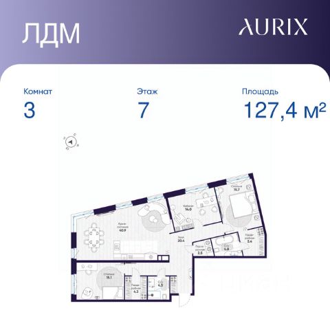 Продается 3-к квартира без отделки в ЖК "ЛДМ". Общая площадь квартиры — 127.4 кв. м, этаж 7 из 8. Тип дома — монолитный. Цена указана при 100% оплате.