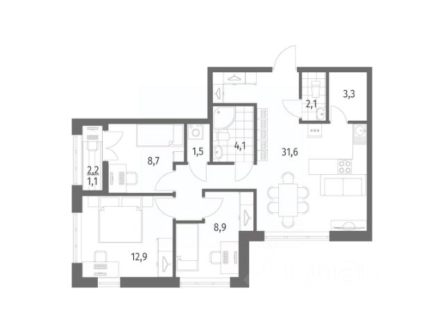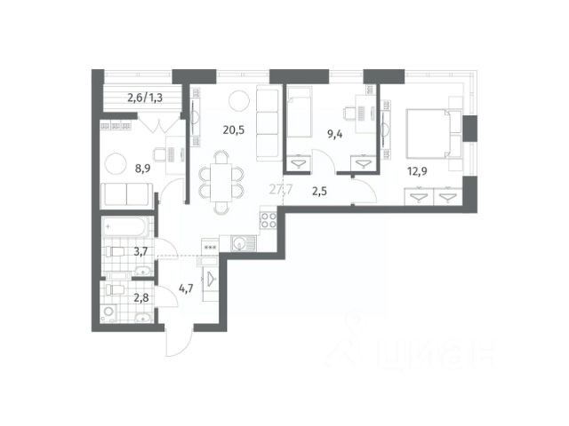 Продается квартира площадью 77.74 м² на 3 этаже 6 секции в NEWПИТЕР от компании ГК "ТРЕСТ". Площадь кухни 20.45 м². Жилой квартал расположен в пос. Новоселье. Прописка Ленинградская область. В 2022 году жилой комплекс NEWПИТЕР (НЬЮПИТЕР) стал победителем в номинации премии Urban Awards "Лучший проект комплексного освоения территории Санкт-Петербурга и Лен. области". В квартале предусмотрено строительство более 30 кирпичных домов высотой от 5 до 18 этажей, двух школ, одна из которых работает с 2020 года, шести детских садов, три из которых уже открыты, современного спортивного комплекса и бизнес-центра, а также паркингов из расчета одно машиноместо на каждую квартиру. Дворы домов проектируются закрытыми и свободными от автомобилей, а в каждом подъезде создаются помещения для хранения колясок, велосипедов и спортинвентаря, которыми могут пользоваться все жильцы. Квартиры в ЖК NEWПИТЕР (НЬЮПИТЕР) можно приобрести с современной отделкой от застройщика. Предусмотрено два варианта чистовой отделки "Ваниль" и "Шоколад". Стоимость отделочных работ составляет 42 000 рублей за квадратный метр. Чистовая отделка в квартирах ЖК NEWПИТЕР (НЬЮПИТЕР) предполагает монтаж натяжных потолков, укладку ламината, оклейку стен обоями под покраску, установку светильников и межкомнатных дверей. При отделке новой квартиры применяются качественные, натуральные и экологичные материалы, монтируется импортная сантехника европейских брендов. Помимо чистовой отделки компания "ТРЕСТ" предлагает воспользоваться услугой "Белая подготовка под ремонт" по цене 16 000 рублей за квадратный метр. В стоимость входит разводка ХВС/ГВС, выполнение стяжки пола, расширенная разводка электрики, грунтовка, оштукатуривание и шпаклевание стен, выполнение оконных откосов и установка ПВХ подоконников. В объявлении указана стоимость квартиры при 100% оплате или ипотеке. При других формах оплаты - базовую стоимость квартиры уточняейте на официальном сайте компании или у менеджера отдела продаж. Срок ввода в эксплуатацию Лот 4: 4 кв. 2026 г. Продается 3-комнатная квартира в кирпичном доме в Ленинградской области.