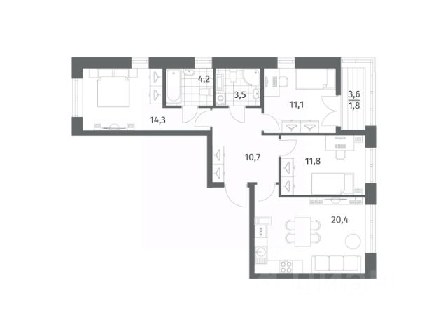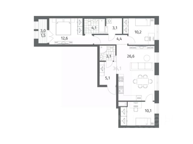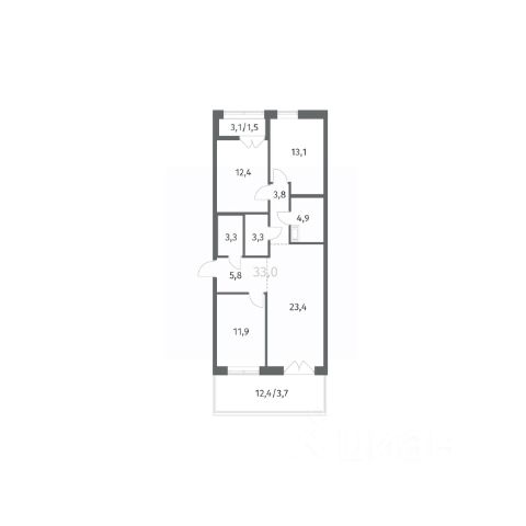 - Застеклённый балкон, ЛОДЖИЯ (3.0м²).