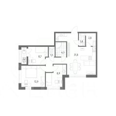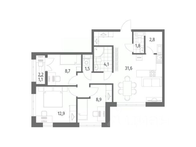 - Спальня (8.6м²) которая подойдёт под ДЕТСКУЮ.