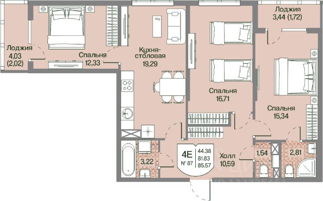 Продаётся e4 комнатная квартира (евро) в жилищном комплексе "Энфилд" (корпус Дом 18 секция 4). Общая площадь 85,18 кв. м, площадь комнат 13,65 кв.м, 12,76 кв.м, 13,03 кв.м. 2 санузла. Квартира расположена на 3 этаже 12 этажного дома. Срок сдачи корпуса IV квартал 2027 года. Современный жилой квартал "Энфилд" от компании Arsenal объединяет в себе преимущества хорошей экологии и удобного расположения рядом с городом. Квартал расположен на территории Мурино-Бугры, в 10 минутах от метро Девяткино. В состав ЖК "Энфилд" войдет 17 домов высотой до 12 этажей, 14 из них уже построено и сдано. На территории работает два детских сада и школа с углубленным изучением иностранных языков. Квартал славится красивой территорией, пешеходным бульваром с фонтанами, детскими и спортивными площадками, инфраструктурой для отдыха. В 5 минутах ходьбы расположен гипермаркет "Лента", из квартала предусмотрен удобный выезд на КАД.