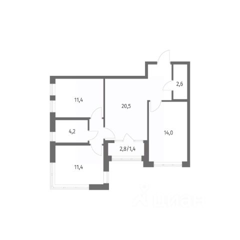 Высота потолков составляет 2,6 метра.