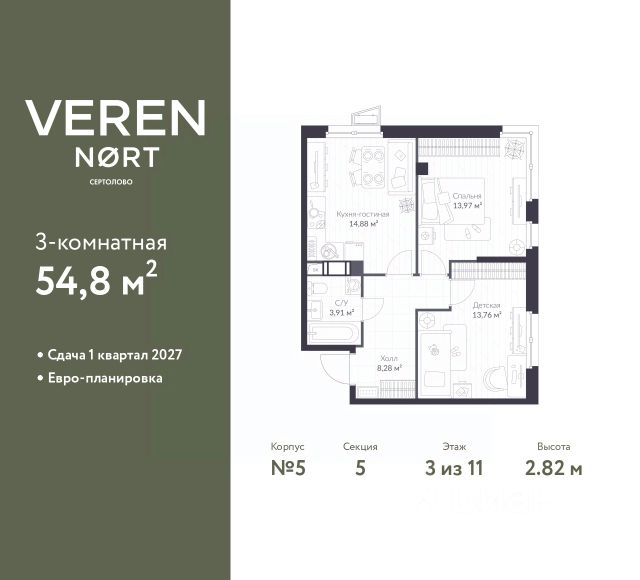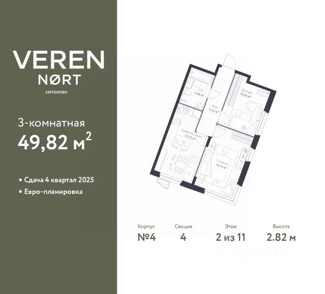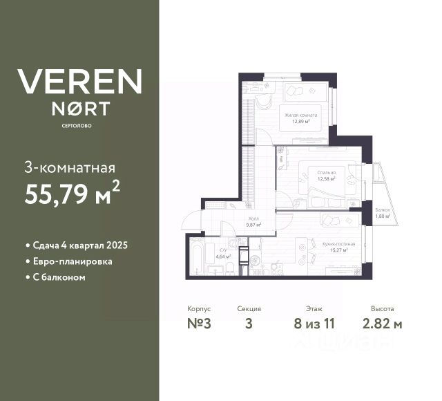 Продаётся 3-комнатная квартира в строящемся доме (Корпус 7.3), срок сдачи: IV-кв. 2025, общей площадью 74.73 кв.м., на 2 этаже. ЖК расположен в Сертолово, мкр.Черная речка. 25 минут на машине до метро Парнас, либо 30 минут до метро Пр.Просвещения. 1 ноября 2022 г. объявлен старт продаж, а значит именно сейчас самые привлекательные цены. Проектное финансирование строительства осуществляет ПАО "Сбербанк". Объект аккредитован по ипотеке в ведущих банках, есть выгодные варианты рассрочки от застройщика, принимается мат.капитал. ЖК "Новая история" это новый малоэтажный жилой комплекс, имеющий свой неповторимый стиль. КОНКУРЕНТНЫЕ ПРЕИМУЩЕСТВА ЖК "НОВАЯ ИСТОРИЯ" 1. Технология строительства кирпично-монолитные дома. 2. Привлекательные современные фасадные решения. 3. Просторные остекленные балконы/лоджии почти в каждой квартире. 4. Закрытые дворы. Посадка жилых домов сформирована таким образом, что каждые 2 дома объединяются общим дворовым пространством, которое огораживается забором. 5. Видеонаблюдение в каждом доме и каждом дворе. Система видеонаблюдения, которой каждый покупатель может пользоваться в своем мобильном телефоне через специальное приложение. 6. Грузопассажирские двухсторонние лифты в каждом подъезде. Т.е. лифт поднимает с уровня земли на каждый этаж. Таким образом, решается вопрос с обеспечением доступа маломобильных групп населения, а также удобен для всех остальных жильцов. Нет необходимости в различных пандусах, чтобы попасть в дом или на первый этаж. 7. Колясочные в каждом подъезде. 8. Комфортная высота потолков от 2,75 до 3 м. 9. Горизонтальная система теплоснабжения (трубы отопления в квартире проходят в стяжке пола и подводятся к радиаторам), а также "безстояковая" система водоснабжения в квартирах (водорозетки устанавливаются на стене, граничащей с общим коридором, под потолком) 10. Многообразие и продуманность планировочных решений. 11. Бесплатные wi-fi зоны во дворах. 12. Велопарковки. 13. Бачки для раздельного сбора мусора. 14. Спам-контейнеры в подъездах. 15. Интернет заведен в каждую квартиру. 16. Розетки на парковках для зарядки электромобилей. 17. В каждой квартире установлен видеофон. 18. Прогулочные зоны. 19. Индивидуальная система естественной вентиляции немецкого бренда Schiedel (для каждой квартиры свой вент.канал, не соприкасающийся с другими, т.е. запахи не будут попадать из квартиры в квартиру). 20. Система "умная инженерия" в каждой квартире: -Счетчики потребления тепловой энергии для каждой квартиры с дистанционным снятием показаний (жильцы платят только за реальных расход тепла, которое они потребили) - термоголовка на каждом радиаторе (регулирует тепло в квартире, позволяет существенно экономить на теплоснабжении); - электронные датчики протечки воды и электронный механизм для запирания (отправляет сигнал о протечке в мобильное приложение, а также сразу в управляющую компанию, перекрывает воду в месте установки крана); - счетчики на воду с дистанционным снятием показаний, передающие показания автоматически