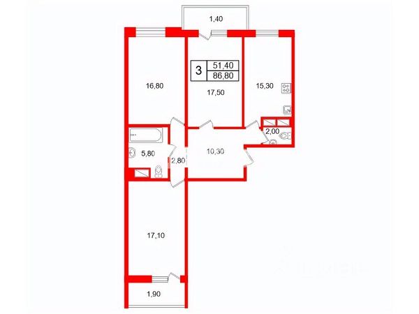 В квартире, действительно, удобная планировка с 3-мя комнатами, отдельной кухней и 2-мя санузлами.