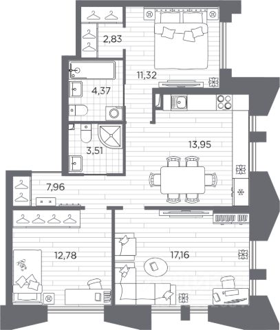 Квартир с такой планировкой у застройщика и в продаже больше нет.