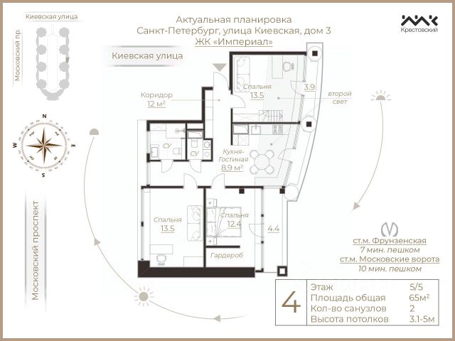 - Рядом 2 парка: великолепный Московский парк Победы и Парк Авиаторов;