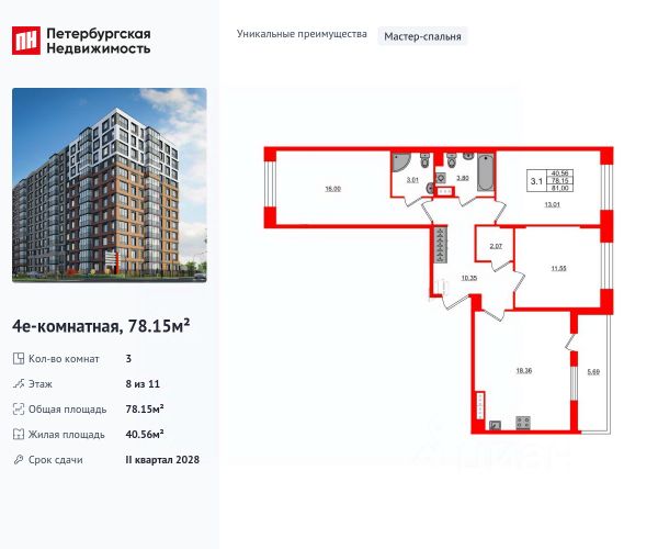 У дома самый большой внутренний двор среди домов ЖК "Царская столица". Единственный подъезд в ЖК "Царская столица", где из окон 3-х комнатных квартир виден салют, запускаемый в городские праздники, пролет военной авиации во время парадов. Глядя в окна квартиры Вы никогда не будете смотреть в телевизор своих соседей, большая жилая площадь квартиры.