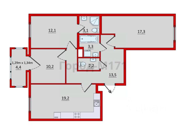 - третья комната - универсальная, которая подойдет как для детской, так и для рабочего кабинета или гостевой комнаты.