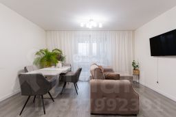 В квартире выполнен новый ремонт в современных спокойных интерьерных тонах, кухня-гостиная и комнаты обустроены стильной мебелью и техникой, раздельный санузел с качественной сантехникой. Панорамное остекление в кухне- гостиной позволяет создавать уютную атмосферу , открывают потрясающие виды на панораму города, наполняя помещение естественным светом.