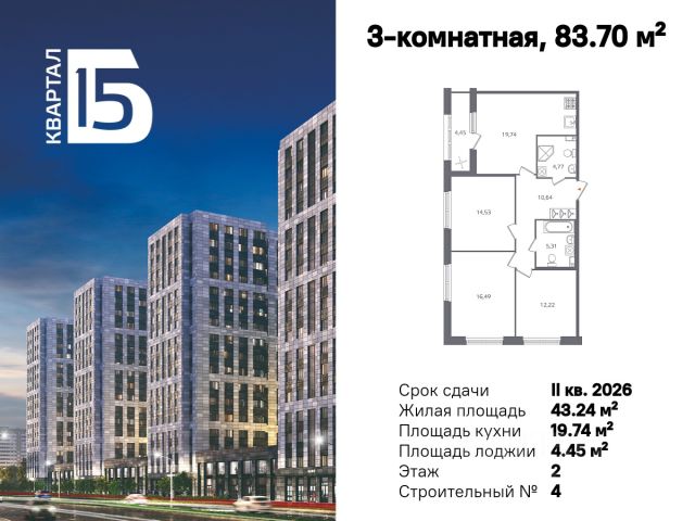 • ✓ В базе Циан 12 3-комнатных квартир в кирпично-монолитном доме в жилой квартал Б15 в территории Полюстрово
