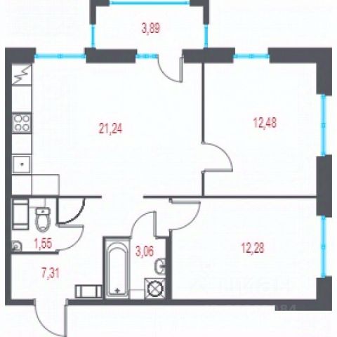 - Общая площадь квартиры составляет 85.9 кв. м, из которых жилая площадь -53 кв. м ., лоджия 3,5 м., не включена в площадь квартиры, а кухня занимает 12.5 кв. м. Высота потолков — 2.8 метра, что добавляет ощущение простора и свободы, просторная кухня- гостиная оборудована встроенной кухней и бытовой техникой, произведено зонирование, на обеденную зону и зону отдыха, очень уютная и релаксирующая атмосфера, из кухни выход на застекленную лоджию.