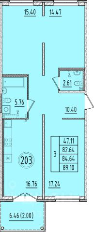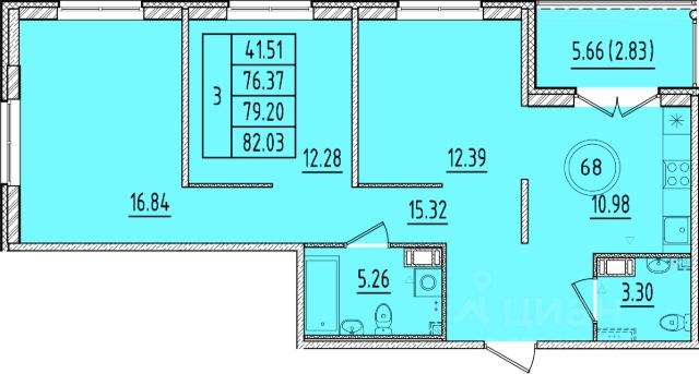 Продаётся 3-комнатная квартира в строящемся доме (Дом 3), срок сдачи: III-кв. 2026, общей площадью 82.1 кв.м., на 3 этаже.