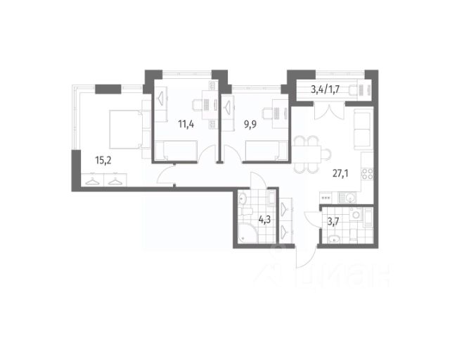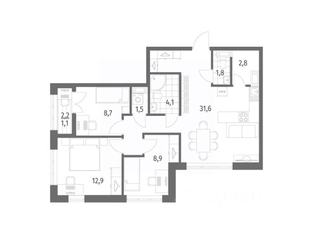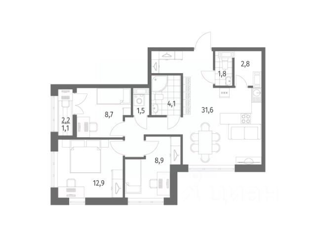 Продается квартира площадью 72.8 м² на 4 этаже 7 секции в NEWПИТЕР от компании ГК "ТРЕСТ". Площадь кухни 31.6 м². Жилой квартал расположен в пос. Новоселье. Прописка Ленинградская область. В 2022 году жилой комплекс NEWПИТЕР (НЬЮПИТЕР) стал победителем в номинации премии Urban Awards "Лучший проект комплексного освоения территории Санкт-Петербурга и Лен. области". В квартале предусмотрено строительство более 30 кирпичных домов высотой от 5 до 18 этажей, двух школ, одна из которых работает с 2020 года, шести детских садов, три из которых уже открыты, современного спортивного комплекса и бизнес-центра, а также паркингов из расчета одно машиноместо на каждую квартиру. Дворы домов проектируются закрытыми и свободными от автомобилей, а в каждом подъезде создаются помещения для хранения колясок, велосипедов и спортинвентаря, которыми могут пользоваться все жильцы. Квартиры в ЖК NEWПИТЕР (НЬЮПИТЕР) можно приобрести с современной отделкой от застройщика. Предусмотрено два варианта чистовой отделки "Ваниль" и "Шоколад". Стоимость отделочных работ составляет 42 000 рублей за квадратный метр. Чистовая отделка в квартирах ЖК NEWПИТЕР (НЬЮПИТЕР) предполагает монтаж натяжных потолков, укладку ламината, оклейку стен обоями под покраску, установку светильников и межкомнатных дверей. При отделке новой квартиры применяются качественные, натуральные и экологичные материалы, монтируется импортная сантехника европейских брендов. Помимо чистовой отделки компания "ТРЕСТ" предлагает воспользоваться услугой "Белая подготовка под ремонт" по цене 16 000 рублей за квадратный метр. В стоимость входит разводка ХВС/ГВС, выполнение стяжки пола, расширенная разводка электрики, грунтовка, оштукатуривание и шпаклевание стен, выполнение оконных откосов и установка ПВХ подоконников. В объявлении указана стоимость квартиры при 100% оплате или ипотеке. При других формах оплаты - базовую стоимость квартиры уточняейте на официальном сайте компании или у менеджера отдела продаж. Срок ввода в эксплуатацию Лот 1.3: Дом сдан