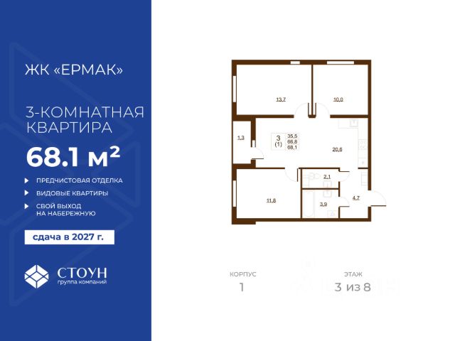 В продаже квартира площадью 126,66 кв.м для семейного проживания. Из холла попадаем в светлую кухню-гостиную с двумя панорамными окнами площадью 31,92 кв.м, приватная зона отделена от гостевой части квартиры и включает в себя две детские по 17 кв.м с о, мастер-спальню с гардеробной и собственной ванной, вспомогательные помещения кладовой и постирочной. Высота потолка 3м, панорамные окна, возможно приобретение машиноместа в подземном паркинге. "VI Квартал" клубный проект, состоящий из четырех трехэтажных корпусов, рассчитан на 76 квартир и 98 машиномест в подземном паркинге. "VI Квартал" расположен в городе Пушкин, на ул. Новая, 20, в шаговой доступности от Екатерининского дворца. Комплекс предусматривает квартиры от 54 до 160 м2 с просторными планировками от 1 до 3 спален, с панорамными окнами и высокими потолками от 3 до 3,8 м. Особое место в проекте занимает детский сад с бассейном на 105 мест для детей от 3-х до 7-ми лет. На территории детского сада запроектированы игровые зоны, физкультурные площадки с резиновым покрытием, зеленые насаждения и теневые навесы. На территории самого комплекса предусмотрены прогулочные зоны, детские и игровые площадки. Безопасность обеспечивает закрытая территория, пункт охраны, консьерж-сервис.