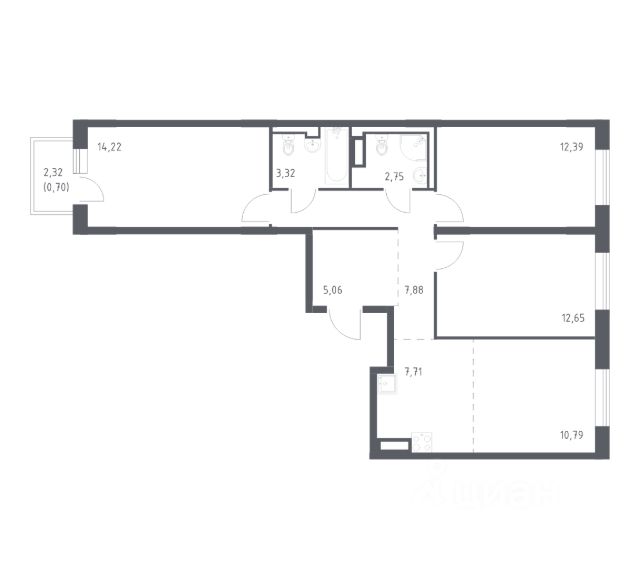 3-комнатная квартира площадью 71.07 в ЖК "А101 Лаголово" на 6 этаже. Квартира без отделки. Вид из окна на улицу. В квартире 2 санузла. Высота потолков 2.84 м. Особенность планировки - гардеробная. ОТДЕЛКА Квартира передается без отделки. Благодаря тому, что в данном типе отделки стены не возводятся, вы сможете создать удобную планировку и самостоятельно организовать зонирование комнат. ОСОБЕННОСТИ ПЛАНИРОВКИ Из окон квартиры открывается живописный вид на зелёный пешеходный бульвар, который строится одновременно с домами. Гардеробная позволяет не только удобно разместить все вещи, но и идеально подходит для хранения крупных предметов. ПАРАДНАЯ. В каждой парадной предусмотрены места для хранения велосипедов и колясок, гостевой санузел и удобная зона ожидания для гостей. ДВОРЫ И ОКРУЖЕНИЕ. Просторные дворы безопасны для детей, так как свободны от машин, закрыты от посторонних и постоянно находятся под видеонаблюдением. Во дворах создается разнообразная среда для детей всех возрастов: детские площадки с батутами, тактильными дорожками и игровыми комплексами. Для активного отдыха - воркаут-площадки, столы для пинг-понга и газоны для занятий йогой. Во дворах есть и тихие уголки - зеленые гостиные с уличной мебелью, где можно поработать на свежем воздухе или отдохнуть в тишине. Из внутренних дворов комплекса можно выйти на пешеходный бульвар длиной около 900 метров. Здесь будет организовано полноценное общественное пространство с амфитеатром, уличным кафе, ручьем, фонтаном и множеством мест для отдыха и игр. Большую часть бульвара займут благоустроенные зеленые зоны и теневые сады из десятков видов деревьев и кустарников, многолетних цветов и трав, которые будут радовать глаз круглый год. "А101 Лаголово" - современный город у подножия знаменитых Дудерговских высот, в объятиях чистейших озер и зеленых живописных массивов, наполненный всем необходимым для счастливой жизни. ИНФРАСТРУКТУРА. Мы занимаемся комплексным освоением территории. Наш приоритет - доступность всех сервисов для счастливой жизни. 1. Лаголово-город 15-ти минутной доступности. Вся необходимая инфраструктура: магазины, салоны красоты, образовательные учреждения, медицинские центры находятся в 15-ти минутах пешей прогулки от любой точки жилого комплекса. Это позволяет не тратить время на долгие перемещения. 2. Представьте идеальный город, где ребенок может спокойно играть, а пожилой человек наслаждаться заслуженным отдыхом. Жилая среда нашего комплекса может комфортно использоваться как 8-летним ребенком, так и 80-летним пожилым человеком. Дома, улицы, общественные пространства, тротуары спроектированы с заботой о людях разных возрастов. 3. Мы активно развиваем авторскую образовательную экосистему "Лёрнити". Она включает строительство 8 современных детских садов (2000 мест) и 3 школ (2945 учащихся). Мы учим родителей гармонично общаться с детьми, помогаем малышам подготовиться к школе, а подросткам - выбрать будущую профессию и развить таланты. Не хватает средств на покупку кла