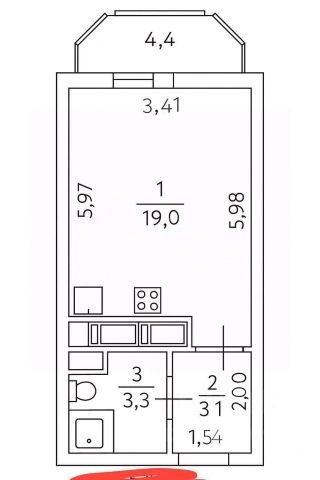 Общая площадь с застекленная лоджия 23,26 м2
