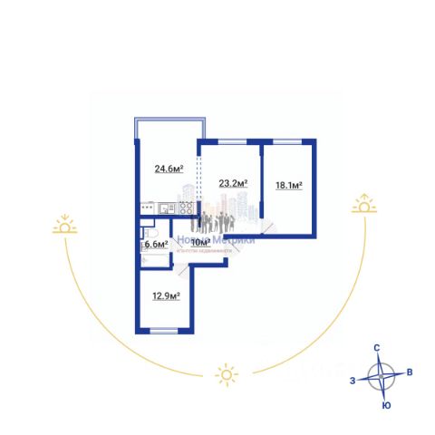 • ✓ В базе объявлений Циан 25 3-комнатных квартир в жилой квартал Северный меридиан в поселке Бугры.