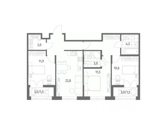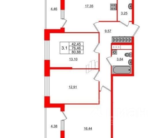 Продается уютная, семейная 3-комнатная квартира от застройщика в жилом комплексе "Город звезд" в новом городе на правом берегу Невы. До метро можно добраться на транспорте всего за 13 минут. Удобная, классическая, функциональная европланировка, большая кухня-гостиная 17.81 м², вместительная прихожая 9.54 м². Общая площадь квартиры - 77.03 м², жилая 42.45 м², высота потолка 2.75 м. Квартира продается с отделкой "NORD LINE SILVER". Что особенного в ЖК "Город звезд"? • Инновационный Лицей Setl с оригинальной архитектурной концепцией и уникальной образовательной средой • Невский лесопарк под окнами - всегда свежий воздух и полноценный отдых на природе • Четыре тематические площади отдыха с разнообразным благоустройством • Аллея Звёзд - променад протяженностью 5 км с ландшафтным озеленением, зонами отдыха и велодорожкой • Выход на набережную реки Утки, где можно порыбачить или взять напрокат лодку • Единая входная группа с ресепшен и подземный паркинг Продается 3-комнатная квартира в деревне Новосаратовка Всеволожского района.