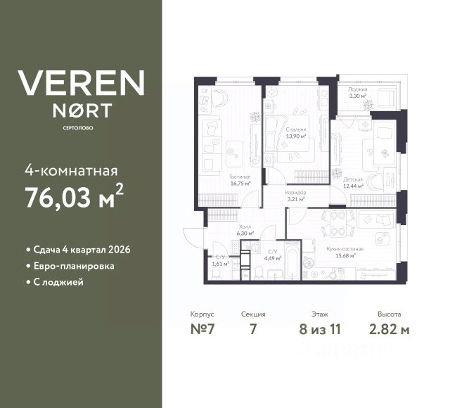 Продаётся 3-комнатная квартира в строящемся доме по адресу ул. Береговая, дом 12, ЖК "Loft у Озера". ЖК расположен в Выборгском районе Санкт-Петербурга, МО Шувалово-Озерки, в 300-х метрах от Большого Суздальского озера. До метро Проспект Просвещения и метро Озерки 8 минут на машине. ДОМ СДАН Проектное финансирование строительства осуществляет ПАО "СБЕРБАНК". Застройщик ООО "СЗ "ИНТЕСКОМ". Жилой комплекс "Loft у Озера" аккредитован в 13- банках Квартира общей площадью 93,75 м2 расположена на 2-м этаже. 4Е планировка. Отделка черновая. Высота потолков 2,85 м. Кухня-гостиная 21,50 м2. Квартира трехсторонняя. Два санузла. Два балкона-веранды с панорамным остеклением. Площадь первого балкона-веранды - 6,93 м2, ширина 1,45 м. Площадь второго - 8,95 м2, ширина 1,48 м. ЖК "Loft у Озера" это уникальный клубный проект бизнес-класса с авторской архитектурой в стиле LOFT, расположенный в самой живописной и элитной части Выборгского района Петербурга. Состоит из двух домов: Дом 8 на 16 квартир и Дом 12 на 59 квартир. 5 ПРИЧИН ВЫБРАТЬ ЖК Loft у Озера: 1. СТИЛЬНАЯ АРХИТЕКТУРА проекта в стиле Loft 2. УЕДИНЕННАЯ АТМОСФЕРА клубного дома 3. ЗЕЛЕНАЯ ЛОКАЦИЯ В МЕГАПОЛИСЕ 4. СМАРТ ПРОСТРАНСТВО внутреннего двора 5. СОВРЕМЕННЫЕ РЕШЕНИЯ ЖК бизнес-класса ОСОБЕННОСТИ ЖК "Loft у Озера": БЛАГОУСТРОЙСТВО: закрытая охраняемая территория двора с ландшафтным дизайном, открытыми парковками. Спортивная площадка с теннисным столом, чилл зона с шезлонгами, территория для отдыха взрослых, место для работы и общения, детская площадка, велопарковки. ПОДЗЕМНЫЙ ПАРКИНГ на 31 машиноместо располагается в доме 12. Машиноместа продаются как отдельные объекты недвижимости. Вход в паркинг отдельный. Лифт в подземный паркинг не предусмотрен. КЛАДОВЫЕ ПОМЕЩЕНИЯ площадью от 2,4 до 10,2 м2 расположены в доме 12. ПАТИО. Все квартиры на 1-х этажах имеют выход на площадку для отдыха возле дома, огороженную живой изгородью. БАЛКОНЫ - ВЕРАНДЫ во всех квартирах. Площадь от 7,5 до 9,5 м2. Глубина от 1.4 до 2 м. ПАНОРАМНОЕ ОСЕКЛЕНИЕ балконов. Увеличенные окна. Классические и ЕВРО ПЛАНИРОВКИ. Кухни от 11 до 23 м2. 46 см толщина наружных стен. УСИЛЕННАЯ ЗВУКОИЗОЛЯЦИЯ в межэтажных перекрытиях. БЕЗБАРЬЕРНАЯ СРЕДА: Все лифты грузовые. Входы в подъезды и входы в лифты располагаются на уровне земли. Не нужно подниматься по ступеням, чтобы попасть в дом или в лифт. ТЕХНОЛОГИЧНЫЕ РЕШЕНИЯ: зарядное устройство для электронных приборов во дворе, зарядная станция для электромобилей, Wi-Fi покрытие дворовой территории, оптоволокно до дверей каждой квартиры, умный доступ во двор и в дом.