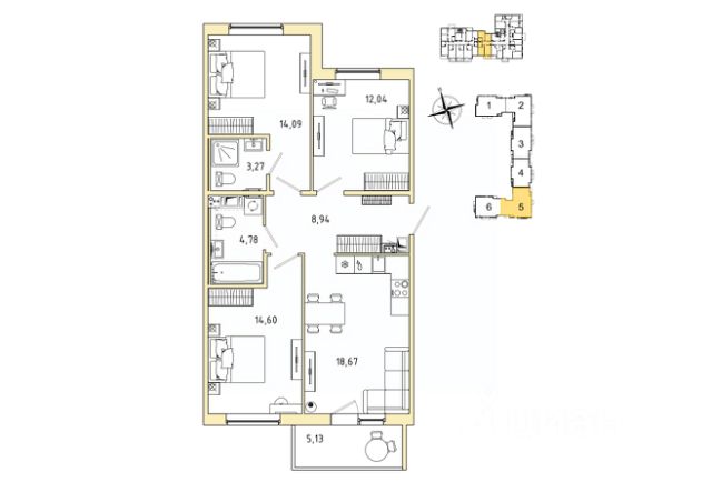 Продаётся 3 комнатная квартира 126 в ЖК IQ Гатчина, 5 оч., к. 3