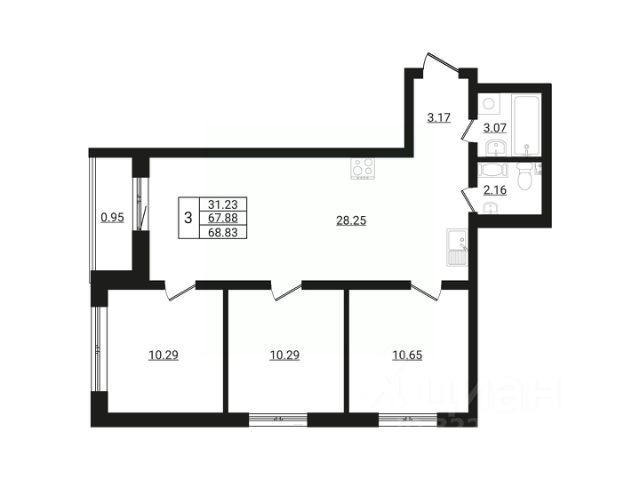 3-комнатная квартира площадью 71.07 в ЖК "А101 Лаголово" на 13 этаже. Квартира без отделки. Вид из окна на улицу. Высота потолков 2.74 м. Особенность планировки - гардеробная. Ключи в 2025 году. Предложения от застройщика на октябрь 2025: - Гибкая рассрочка 20 000 руб/мес. и первым взносом 10%. ОТДЕЛКА Квартира передается без отделки. Благодаря тому, что в данном типе отделки стены не возводятся, вы сможете создать удобную планировку и самостоятельно организовать зонирование комнат. ОСОБЕННОСТИ ПЛАНИРОВКИ Гардеробная позволяет не только удобно разместить все вещи, но и идеально подходит для хранения крупных предметов. ПАРАДНАЯ В каждой парадной предусмотрены места для хранения велосипедов и колясок, гостевой санузел, лапамойка (место для мытья домашних животных или колес велосипедов) и удобная зона ожидания для гостей. ДВОРЫ И ОКРУЖЕНИЕ Просторные дворы свободны от машин и закрыты от посторонних. Большую часть комплекса займут благоустроенные зелёные зоны, теневые сады и городские общественные пространства с развитой тротуарной сетью и велодорожками. Каждый дом оборудован системами видеонаблюдения и контроля доступа. "А101 Лаголово" - современный город у подножия знаменитых Дудерговских высот, в объятиях чистейших озёр и зелёных живописных массивов, наполненный всем необходимым для счастливой жизни. ИНФРАСТРУКТУРА. Мы занимаемся комплексным освоением территории. Наш приоритет - доступность всех сервисов для счастливой жизни. 1. Лаголово-город 15-ти минутной доступности. Вся необходимая инфраструктура: магазины, салоны красоты, образовательные учреждения, медицинские центры находятся в 15-ти минутах пешей прогулки от любой точки жилого комплекса. Это позволяет не тратить время на долгие перемещения. 2. Представьте идеальный город, где ребенок может спокойно играть, а пожилой человек наслаждаться заслуженным отдыхом. Жилая среда нашего комплекса может комфортно использоваться как 8-летним ребенком, так и 80-летним пожилым человеком. Дома, улицы, общественные пространства, тротуары спроектированы с заботой о людях разных возрастов. 3. Мы активно развиваем авторскую образовательную экосистему "Лёрнити". Она включает строительство 8 современных детских садов (2000 мест) и 3 школ (2945 учащихся). Мы учим родителей гармонично общаться с детьми, помогаем малышам подготовиться к школе, а подросткам - выбрать будущую профессию и развить таланты. Не хватает средств на покупку кладового помещения? Оформите ипотеку на квартиру и добавьте к ней часть стоимости кладовой. ЗАСТРОЙЩИК ГК "А101" - крупный инвестиционно-строительный холдинг, занимает 6-е место по объему строительства в России (по данным "Единого ресурса застройщиков" на 2023 год). НКР присвоило ГК "А101" кредитный рейтинг A+.ru, подтверждая его надежность и финансовую устойчивость для завершения строительства ЖК.