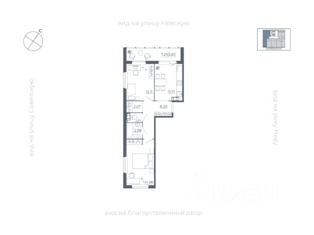 балкон с комнаты -------------------- Продажа квартира в новостройке, Ленинградская область, Всеволожский район, Дубровское городское поселение, городской посёлок Дубровка, коттеджный посёлок Новая Дубровка, улица Достоевского, 1 --------------------