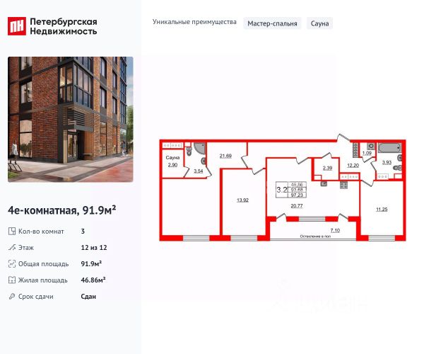 Квартира площадью 93,5 кв.м. расположена на высоком 2 этаже с удобной двусторонней и функциональной планировкой.