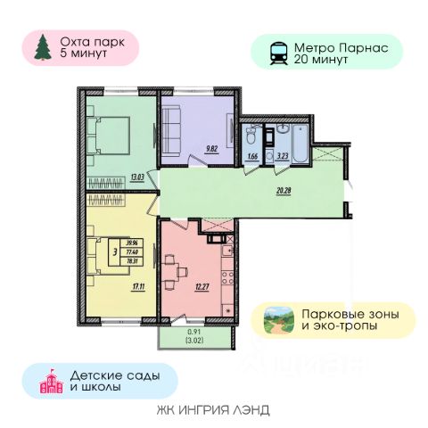 • ✓ В базе Циан 52 3-комнатных квартир на последнем этаже рядом с метро Гражданский проспект