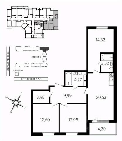Продается 3-комнатная квартира в ЖК "Морская набережная" на 16 этаже. Общая площадь составляет 103.90 кв. м. Квартира без отделки. Жилой комплекс "Морская набережная" располагается по адресу Санкт-Петербург, Василеостровский. Жилой комплекс "Морская набережная" - проект бизнес-класса на Васильевском острове, расположенный на берегу Финского залива. Этот район гордится большим количеством культурно-исторических объектов, активно участвует в развитии современной культуры. Расположение: • 3 минуты до ЗСД; • 10 минут на автомобиле до станции метро "Приморская"; • 18 минут на автомобиле до стрелки В.О. и исторического центра города. "Морская набережная" - это экологически благополучное место с чистым грунтом и свежим воздухом. Прямо перед домом - благоустроенный сосновый парк. Хвойный массив поднимется вместе со строящимися домами - здесь уже высажено более 1 300 деревьев двухметровой высоты. Выйдя из дома, можно отправиться на прогулку в парк или пройти через двор к набережной у залива. Проект набережной выполняется в духе европейского ландшафтного дизайна: высаживаются лиственные деревья и сосны, поднимается уровень дерна, газоны украшаются злаками и кустарником. Преимущества: • Высокие потолки и широкие окна; • Подземный паркинг с лифтом до Вашего этажа; • Огороженный внутренний двор без машин; • Система "Умный дом" и видеонаблюдение; • Школа и детские сады на внутренней территории ЖК; • Инфраструктура шаговой доступности на первых этажах корпусов; • Продуманная территория для отдыха, игр и спорта. Успейте приобрести квартиру на выгодных условиях! Чтобы узнать подробности, обращайтесь за консультацией по телефону.