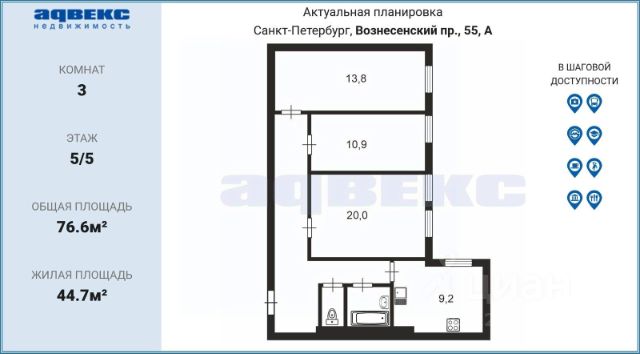 • ✓ В базе Циан 37 3-комнатных квартир на последнем этаже рядом с метро Сенная площадь