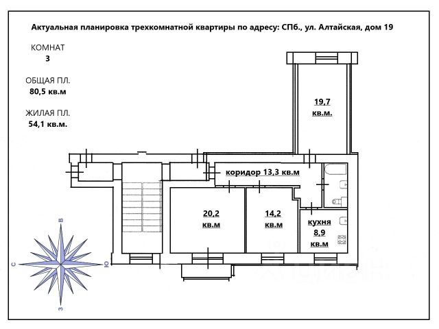Комнаты 19,7+12,2+10,2 кв. м