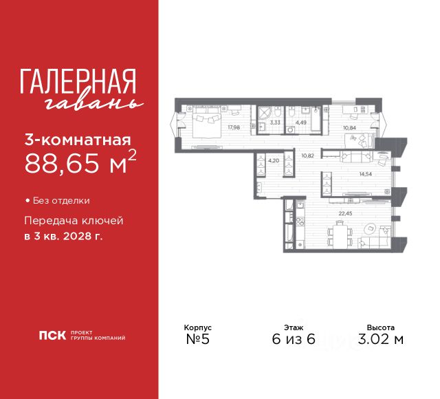 3-комн. квартира с предчистовой отделкой в ЖК "LEGENDA Васильевского" на 10 этаже. Общая площадь: 83.54 кв.м., жилая: 32.14 кв.м., площадь просторной кухни-столовой: 26.79 кв.м. Квартира угловая, окна oбecпeчивaют paвнoмepнoe ocвeщeниe в тeчeниe дня. В квартире два раздельных санузла. Высота потолков 2.72 м. "LEGENDA Васильевского" жилой квартал в минутной доступности от Финского залива, главного креативного хаба Санкт-Петербурга Севкабель Порта и других точек притяжения. Современные инженерные и технические решения, повышающие качество жизни TechnoBox включают в себя: стационарный и удаленный контроль дома, систему вентиляции Air Design - здоровое дыхание без лишнего шума, мультисервисную сеть, объединяющую коммуникационные системы, удаленное управление электроприборами, контроль отопления в каждом помещении, поддерживающий оптимальный температурный баланс во время "холодного" периода", датчики протечки, датчик открытия входной двери. Мультисервисная сеть (МСС) объединяет ключевые слаботочные системы дома, задавая им единый высокий стандарт работы, обеспечивая надёжность их функционирования и управления. Квартира готова к декорированию. Застройщиком сделана шумоизоляция; стены подготовлены для отделки; проведена электрика с учетом рекомендаций по расстановке мебели и бытовой техники; выровнен пол. В каждой квартире установлена взломостойкая входная дверь, окна со специальным термоизолированным алюминиевым профилем. Двор жилого комплекса "LEGENDA Васильевского" закрыт. Проект состоит из шести разноформатных корпусов с ритмичными фасадами в духе пост-конструктивизма. Геометрия жилого комплекса состоит из четко простроенных осей, чередующих открытые пространства и объемы корпусов, каждый из которых обладает своим визуальным кодом индивидуальным рисунком фасада и цветовой палитрой. Корпуса образуют периметр с общественными пространствами: площадью с кафе, магазинами и пешеходным променадом с детскими игровыми хабами, местами для спокойного отдыха и workout-зоной. Срок сдачи 4 квартал 2027 года. На территории комплекса предусмотрены теплый подземный паркинг и два наземных 4-х этажных паркинга.